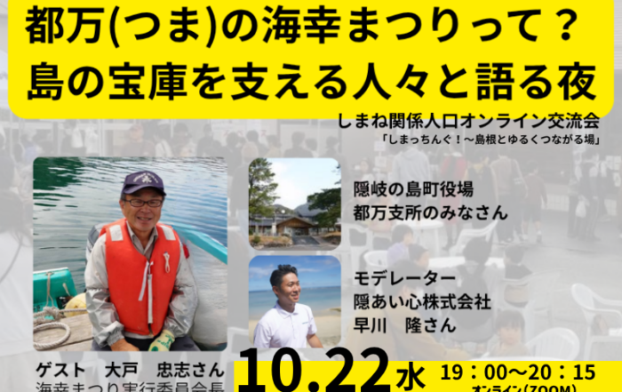 【島根県】しまね移住project2025-10-10T18:26:43+09:00【島根との関わりは自分次第!】10/22(火)開催 あなたと地域をつなぐオンライン交流イベント「第2回しまっちんぐ!」の参加者募集中!By 【島根県】しまね移住project|2025-10-10T18:26:43+09:002025.10.10|