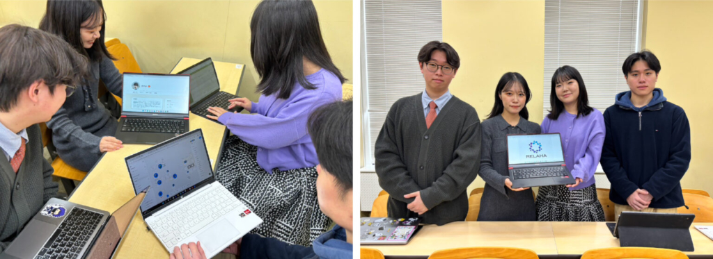 私たちは2022年度より、福島県楢葉町において、町に愛着をもって継続的に関わる「愛着人口」の増加を目指して活動している。その一環として、町民同士や町内外の人をつなぐアプリ「Relaha」を開発中。町の情報が可視化されたアプリ内で、町民の身近な悩みや、企業・地域が抱える課題、気軽なお誘いを起点に多くの人がつながり、継続的な関係が生まれることを目指している。