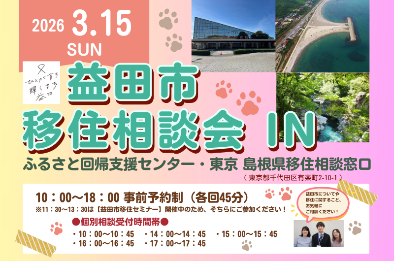 3/15(日)ふるさと回帰支援センター・東京で「益田市 移住相談会」を開催します!