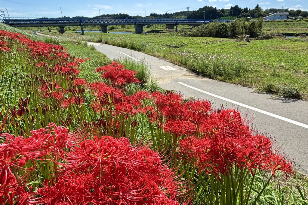 サイクリングロード沿いに咲く彼岸花(南相馬市鹿島区役所提供)