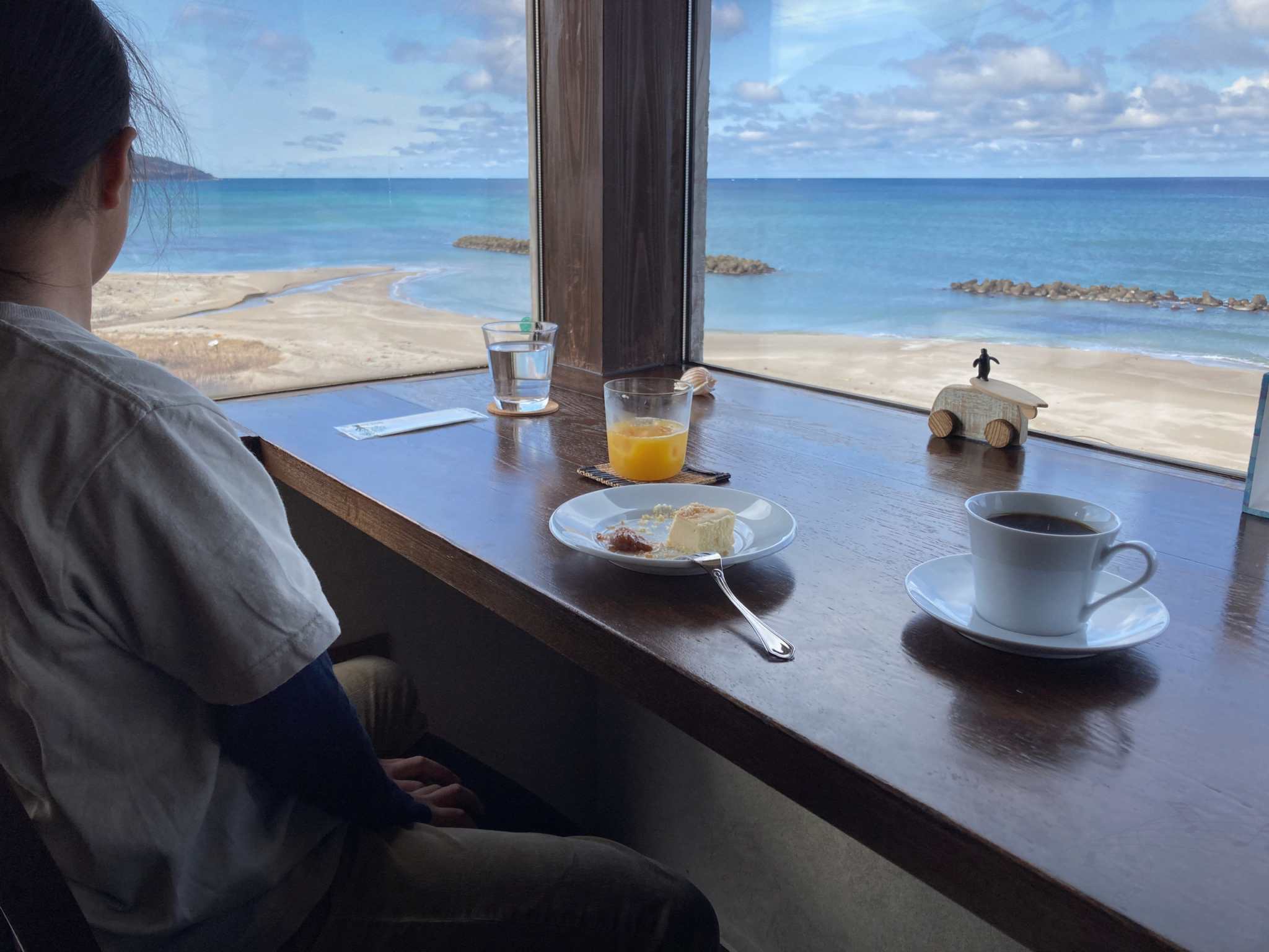 この日は娘と一緒にのんびりしに来ました。店内から海が見えます。