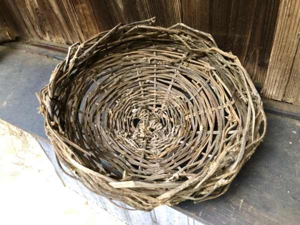 娘が編んだ浅めのカゴ。取ってきた栗を入れるのに重宝しました。