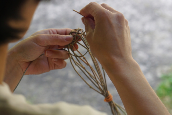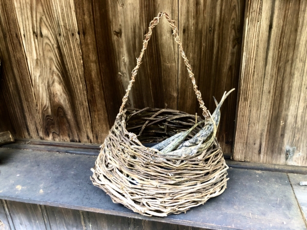 お花は漢方にも用いられ、根っこは葛餅の材料になり、茎の部分はカゴの材料になります。我が家では、毎年、お花は砂糖漬けにしてシロップを作り、香りを楽しんでいるのですが、今年は茎も使ってカゴを編んでみました。