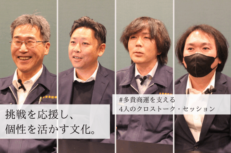 「多貴商運」という社名を見ると、多くの方はトラックや長距離輸送を思い浮かべるかもしれません。しかし今回、事務所の一室に集まっていただいた4名のキーパーソンたちが語る言葉は、そのイメージとは少し違う温度を持っていました。