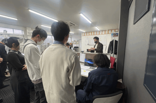 3月3日の現場視察では、弊社の代表・役員・ドライバーが学生のヒアリングに対して正面から向き合い、業務の課題を包み隠さず共有しました。体験を提供するのではなく、一緒に課題を解決してほしいという姿勢で迎えました。