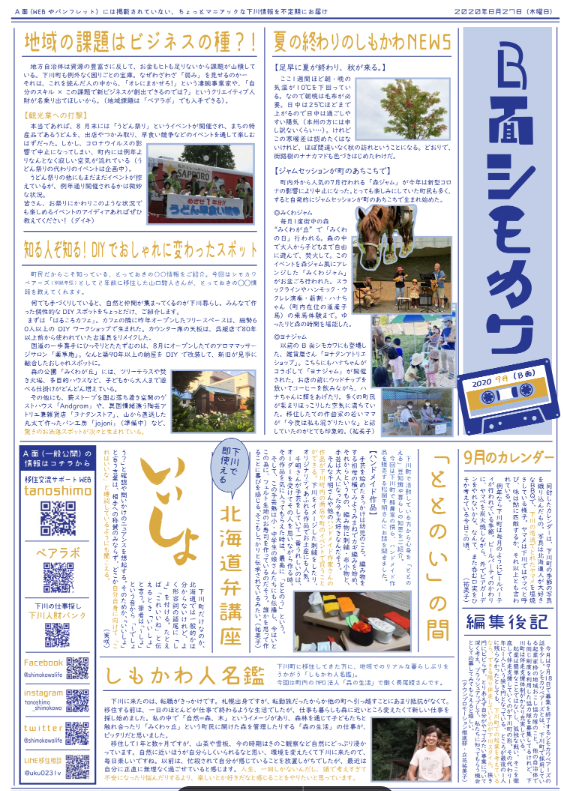 【その2】毎月のワクワク「会報誌&カレンダー」 「B面シモカワ」や季節のデータをお届け。スマホやデスクで下川を感じられます。