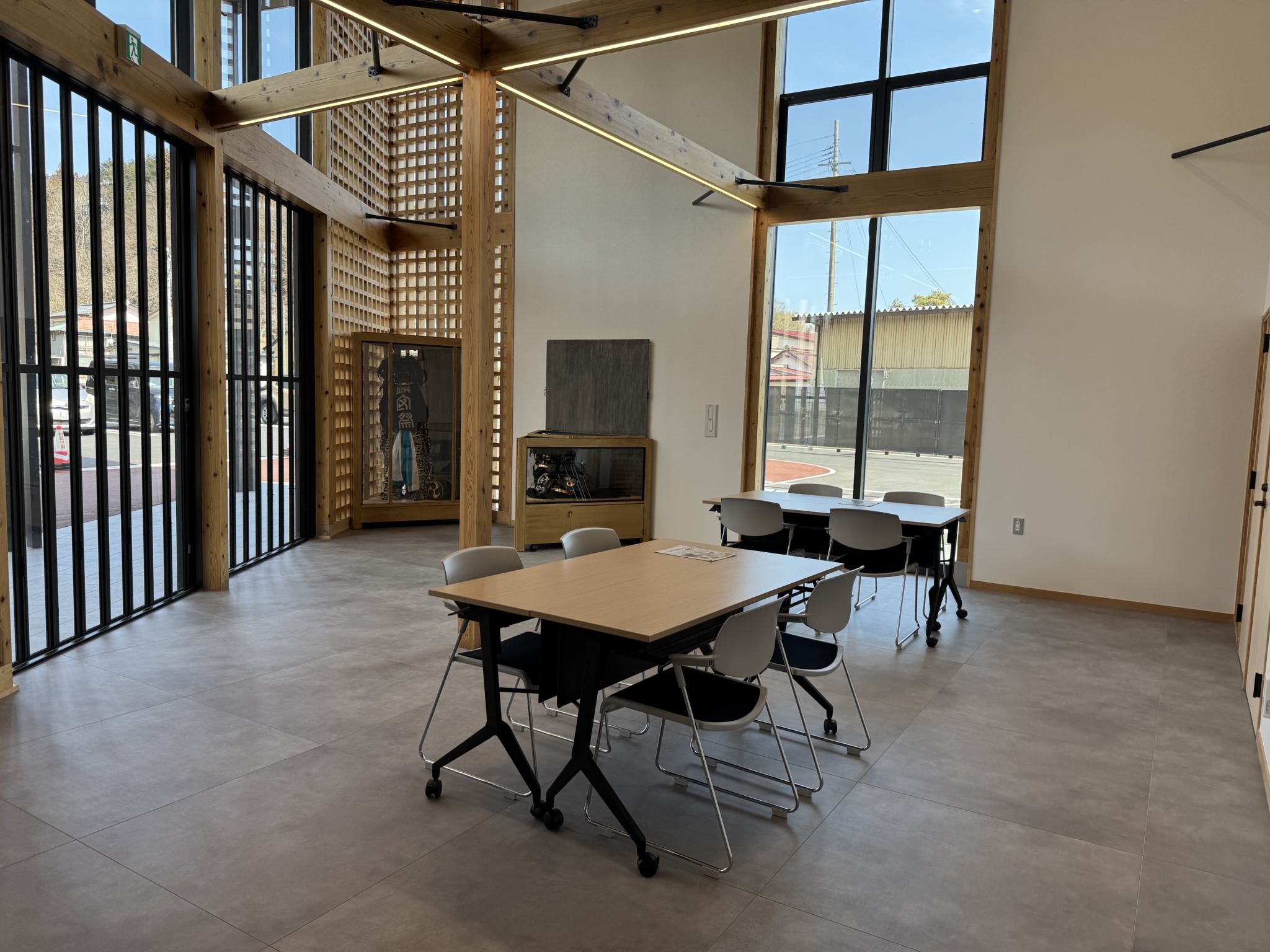 「多目的ホールには田村市の無形民俗文化財『岩井沢の三匹獅子舞』で使用される獅子頭や衣装を展示しており、地域の文化に触れることができます。ホールは最大20人ほどが入れる広さで、会議やイベント、展示などに利用できます。これまでに、カイロプラクティックの出張施術の会場として利用されたこともあります。利用には事前申請が必要となるため、まずは商工課へ電話でお問い合わせください。ドッグランは申請不要で利用できますが、現在は整備中のため、利用開始の際に改めて広報します」