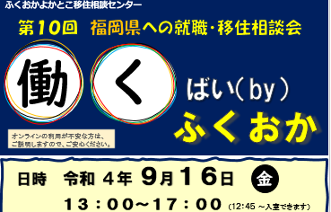 【9月16日(金)オンライン開催】第10回福岡県への就職・移住相談会「働くばい(by)ふくおか」を開催します!