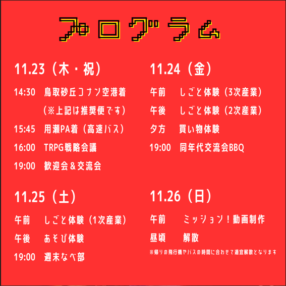 【定 員】12名<6名(鳥取県外からの参加)+6名(鳥取県内からの参加)>