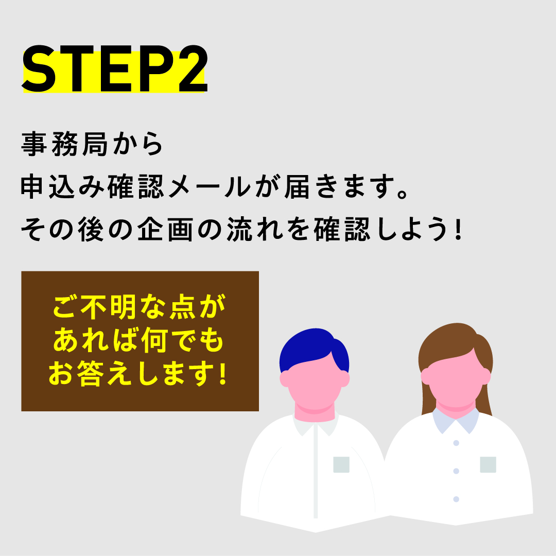 STEP2:事務局から申込み確認メールが届きます。その後の企画の流れを確認しよう!