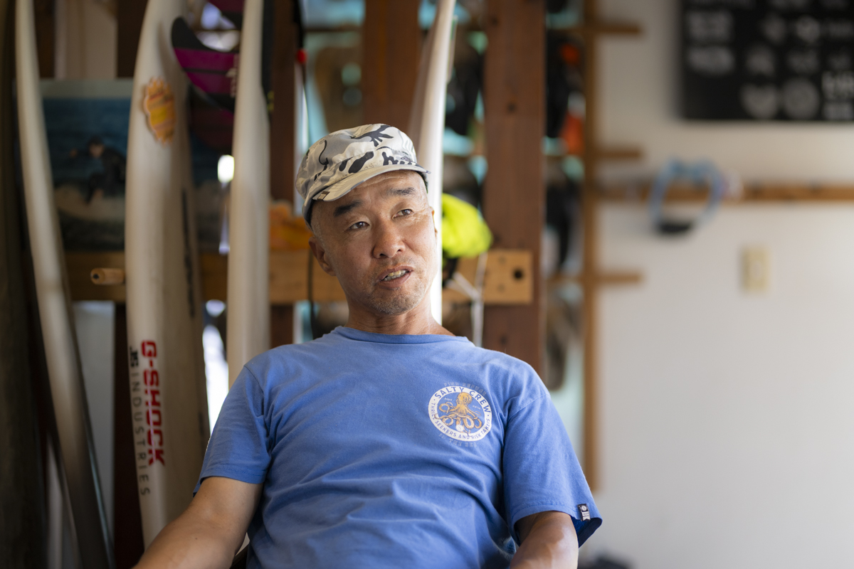 マイク・ウーさんに「日本の中で波が一番良い」と紹介され、ハワイから海陽町に移住してきた間屋口さん。2000年に移住、2005年にはサーフショップ『パビリオンサーフ』をオープンし、今に至ります。過去何度も移住を繰り返してきた間屋口さんがこの地に定住したことこそが、サーファーにとっての海陽町の魅力度の高さを物語っています。
