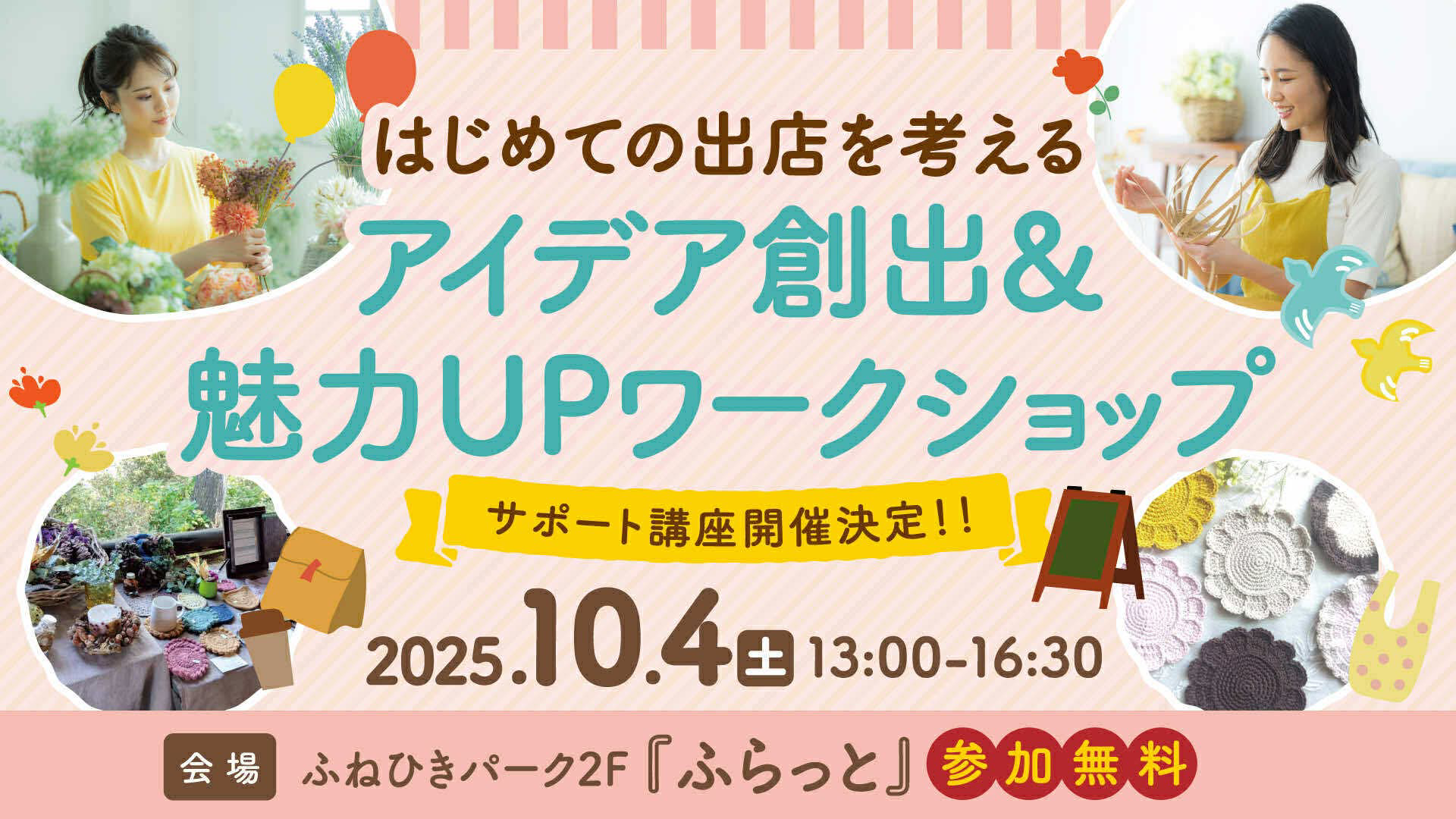 0円で店舗を借りて販売やサービス提供を試すことができるスペース「ふらっと」では、マルシェで出店してみたいという初心者の方に向けたワークショップを開催します!