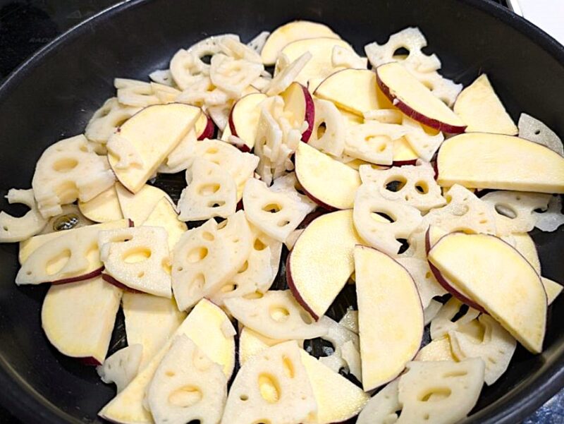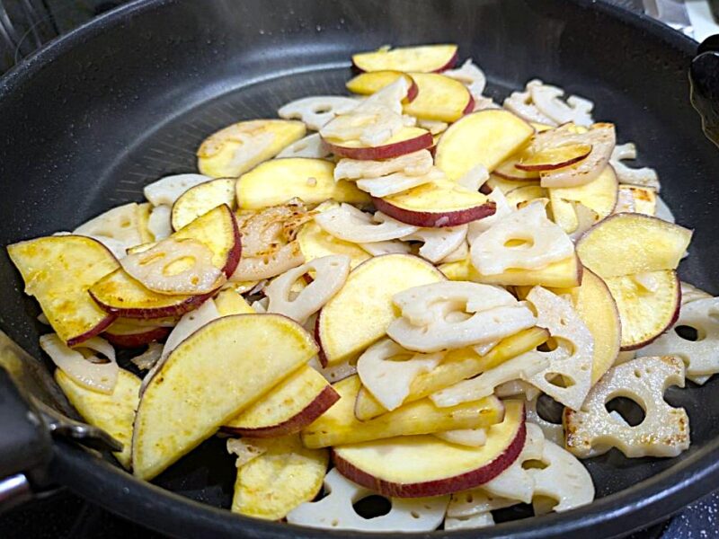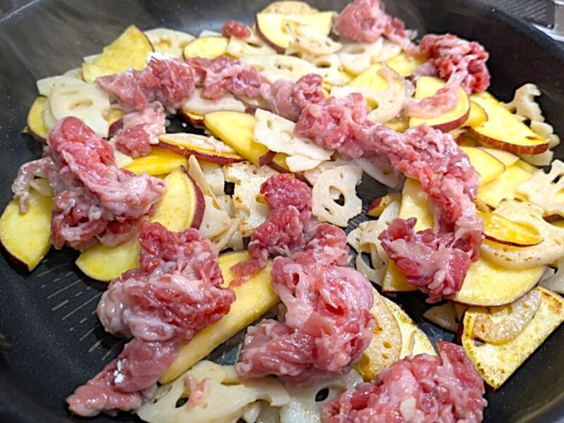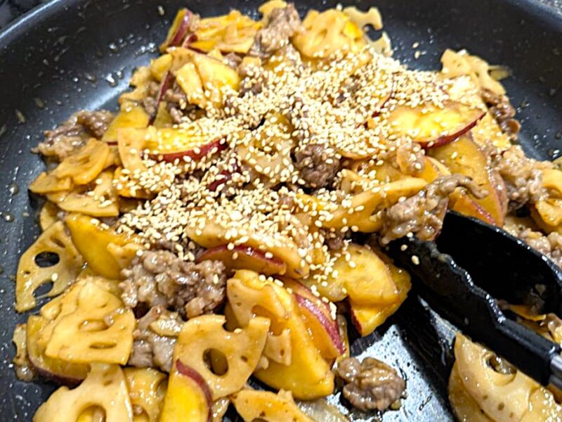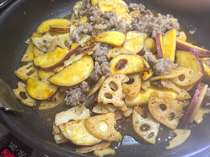◇なると金時と徳島産れんこんと牛肉の甘辛炒め煮
