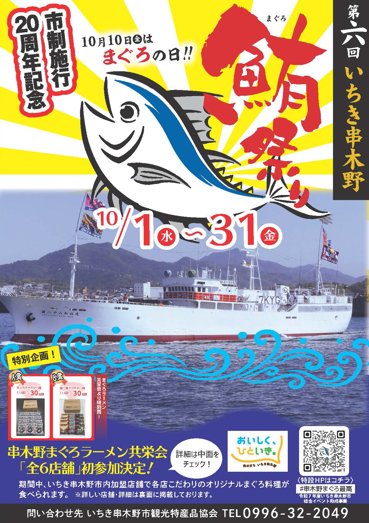 遠洋まぐろ漁船の船籍数が全国有数のいちき串木野市で、市制施行20周年記念【第6回まぐろ祭り】が開催されます!