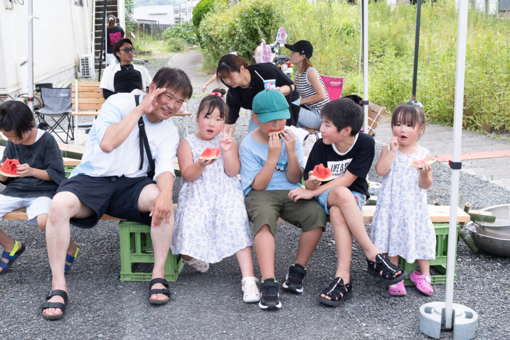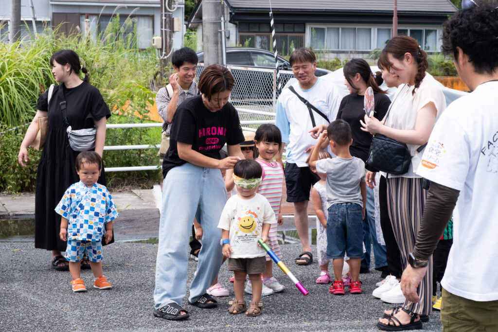 会場には町内外からいろいろな人が参加していながらも、運営スタッフと参加者の垣根があまりないように感じられ、親戚の集まりのような雰囲気。スイカ割りの場面では、家族の枠を越えて大人が子どもたちの面倒をみる姿もありました。