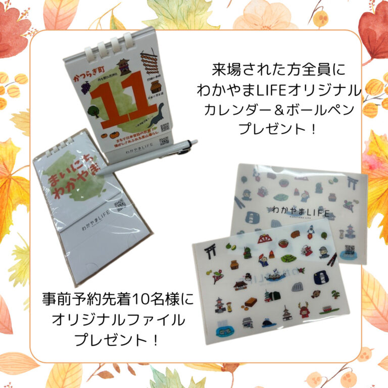 ・事前予約された方先着10名に「わかやまLIFEオリジナルクリアファイル」をプレゼント