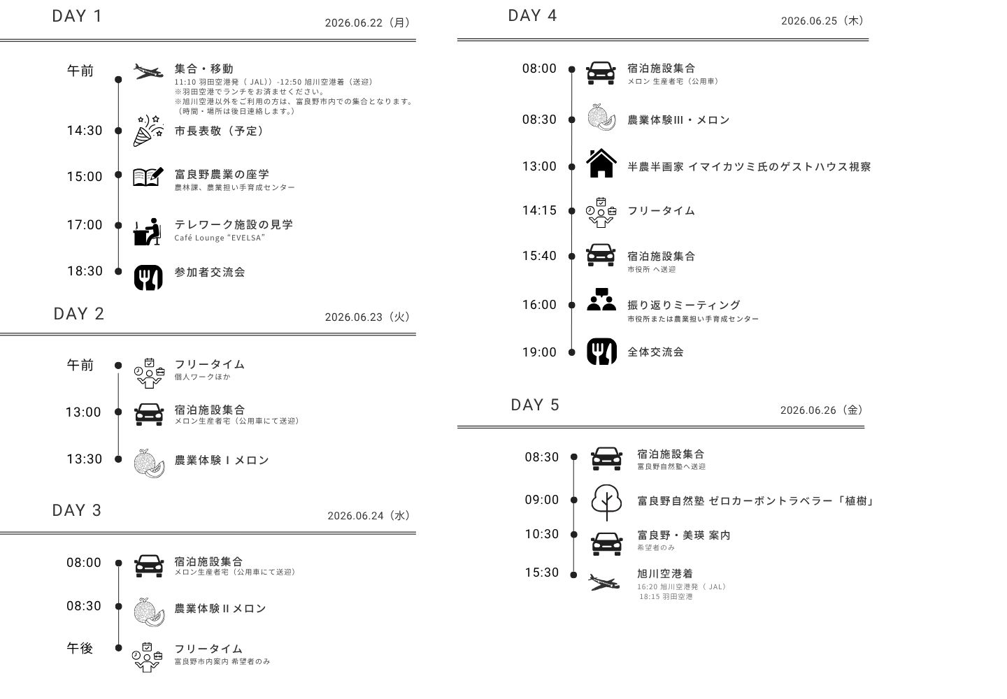 今回のテーマは、富良野の基幹産業である「農業」 。 単なる観光や収穫体験ではなく、リアルな生産現場に深く入り込み、「農のある暮らし」や「半農半X」という働き方のヒントを探る4泊5日のプログラムです 。