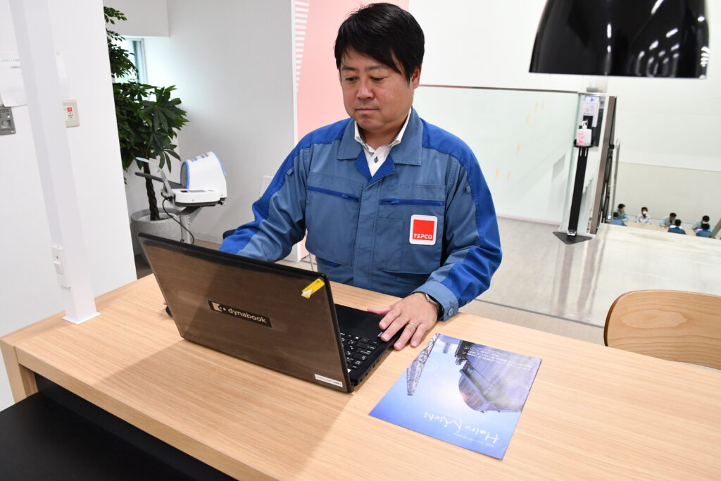2023年から『はいろみち』の編集を担当する三瓶哲世(さんぺい あきよ)さんは神奈川県横浜市の出身。1995年の入社以来、神奈川県内で勤務してきましたが、勤続27年目で初となる県外勤務地が福島第一原子力発電所でした。神奈川時代は営業所での窓口対応や太陽光発電の新設受付などが担当業務の中心。『はいろみち』のような広報業務は初めての経験でしたが、今では『はいろみち』編集の中心的存在として、発電所内はもちろん、近隣地域も飛び回りながら編集作業にあたっています。