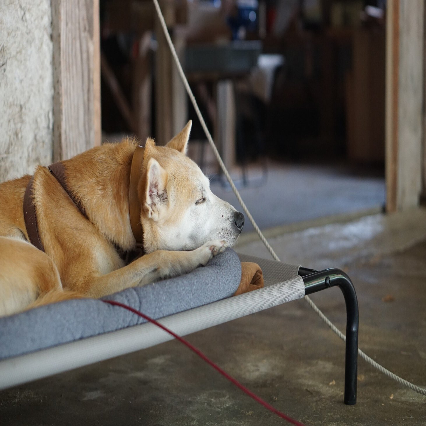 営業中はライナスは涼しい工房でのんびり。ハンナはライナスよりも暑がりなので、家の中の一番涼しい部屋でお昼寝しています。