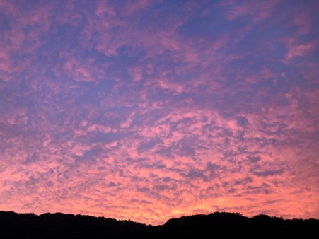 家を出てすぐ目の前に広がる、5時過ぎの朝焼け。
