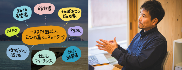 板垣:そうですね。私自身は、もともと県の移住コンシェルジュとして移住検討者のサポート事業に関わってきて、その経験をベースにしながら、県内で地域おこし協力隊を経験してきた仲間との出会いもあり、この一般社団法人のえひめ暮らしネットワークを立ち上げた、という流れになります。2020年に設立して、今期で6期目になります。