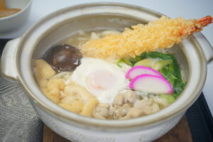「大石家」さん。御浜町でこんな美味しいうどんが食べれる!地域愛とアットホームな雰囲気。若き2代目の店主・榎本白馬さんは、Uターンして地元に帰り、先代の味を守りつつ、自らの創意工夫も大切にしてます。郷土への敬意と愛情が伝わるお店です 。一年中楽しめる工夫と品質へのこだわりがあり、名物・鍋焼きうどんには地元産の食材を使い、素材の味を活かす丁寧な仕込みが特徴です。一方、冷たいうどんメニューも豊富に取り揃え、「熱いうどんは熱いうちに、冷たいうどんは冷たいうちに」と、温度管理にもこだわっています 。