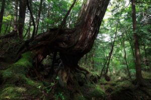 一歩足を踏み入れれば、そこはまるで映画の世界です。苔むした岩と巨樹が織りなす幻想的な風景、そして肌に触れる凛とした空気。