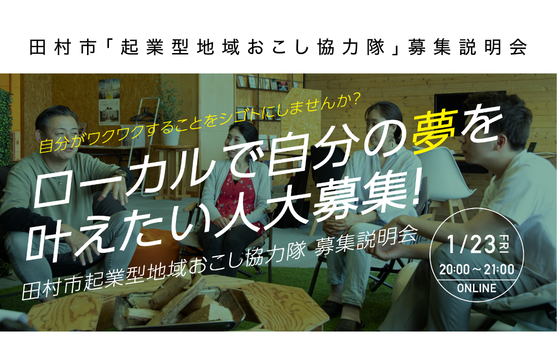 田村市で実現してみたいビジネスアイデアをお持ちで、地域課題を解決する起業型地域おこし協力隊を募集します。