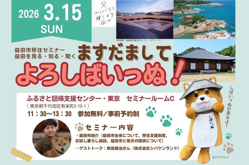 東京でじっくり益田市の話や移住相談ができる絶好の機会ですので、益田市や島根県西部・石見エリアが気になっている方は是非お越しください!