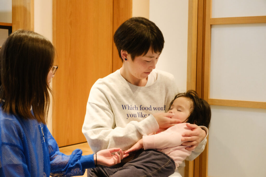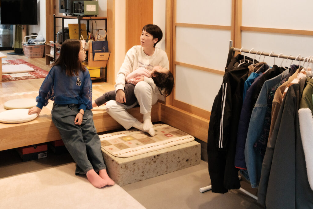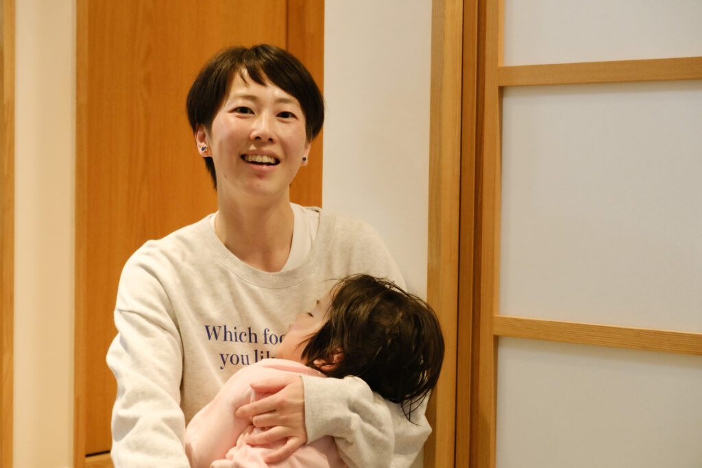 優希さん。お昼寝中の次女を抱え、きょうだいが遊ぶにぎやかな声が響くなかでお話してくれた