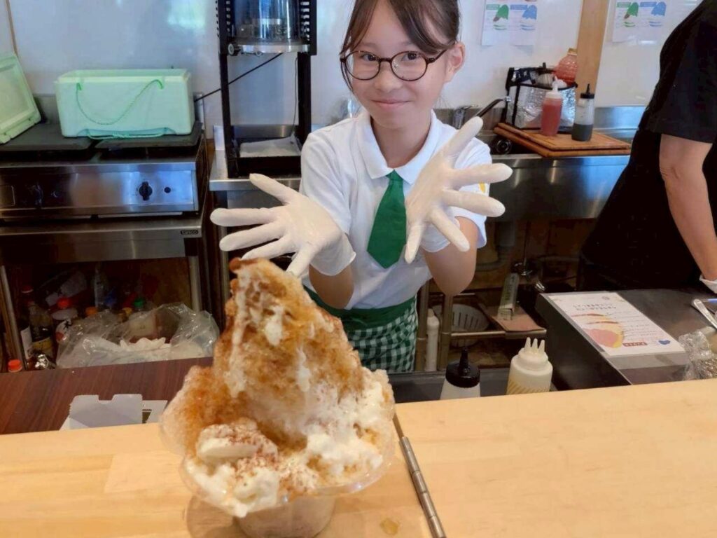 夏にはかき氷屋さんになりきるイベントが開催され、蒔千さんだけでなく家族みんなで参加(綾部さん提供)