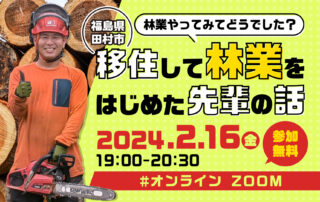 福島県田村市オンライントークイベント 移住してから飛び込んだ林業の世界。 [...]