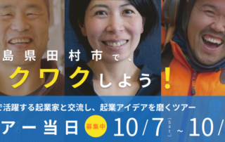 地方移住や起業に興味がある方、必見!! 東京から片道2時間の福島県田村市で、地域で活躍する起業家と交流し、起業アイデアを磨くツアーを開催します! [...]