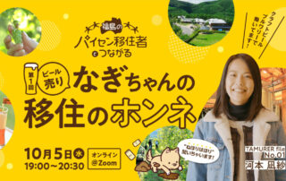 2022年11月16日(水)に、先輩移住者の「本音」が聞けるオンライントークイベントを開催しました。今回のゲストは、夢である飲食事業立ち上げのため奥様の実家がある田村市への嫁ターンを選択された「中村 匠汰 [...]