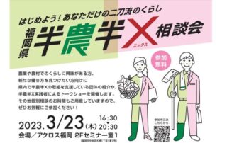 福岡県半農半X相談会を開催します! 農業や農村でのくらしに興味がある方、新たな働き方を見つけたい方向けに県内で半農半Xの取組みを支援している団体の紹介や実践者によるトークショー、個別相談会を開催します! [...]