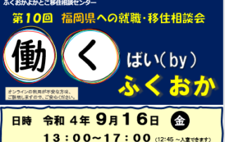 【9月16日(金)オンライン開催】第10回福岡県への就職・移住相談会「働くばい(by)ふくおか」を開催します! 「福岡で仕事を探したいけど、どうしたらいいの?」「どんな仕事があるの?」 [...]