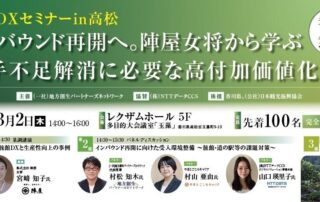 【日本の地域を支える観光DXトレンドを徹底議論】 今回のセミナーでは、(株)陣屋での旅館DXによる生産性向上事例のご紹介や、インバウンド再開に向けた受け入れ環境整備をどのように進めていけばよいのか、というテーマでのパネルディスカッションを実施します。旅館経営を強化する具体的イメージをご理解いただき、次のアクションに繋がるよう、旅館・ホテル、道の駅の経営者のみなさまを対象にしたセミナーを開催します終了後は名刺交換会を開催いたします。皆様のご参加をお待ち申し上げております。日時:2023年3月2日 [...]