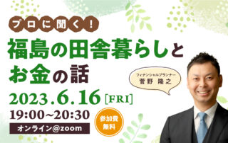 2023年6月16日(金)に、移住前後やライフプランに合わせたコストをプロと一緒に考え、移住に関するお金や田舎暮らしについて理解を深めるオンラインイベントを開催しました。今回は田村市で40年間、地域住民の資産形成や保険などの相談を受けている有限会社エンドーフィナンシャルの菅野隆之さんをお招きし、田村市民の光熱費や車関係費などの家計支出の事例紹介や住宅・子育て事情などをご説明いただきました。また参加者にそれぞれの移住前後の生活費用をシミュレーションしてもらう、ワークショップも行いました。 ゲスト:有限会社エンドーフィナンシャル 菅野隆之 [...]