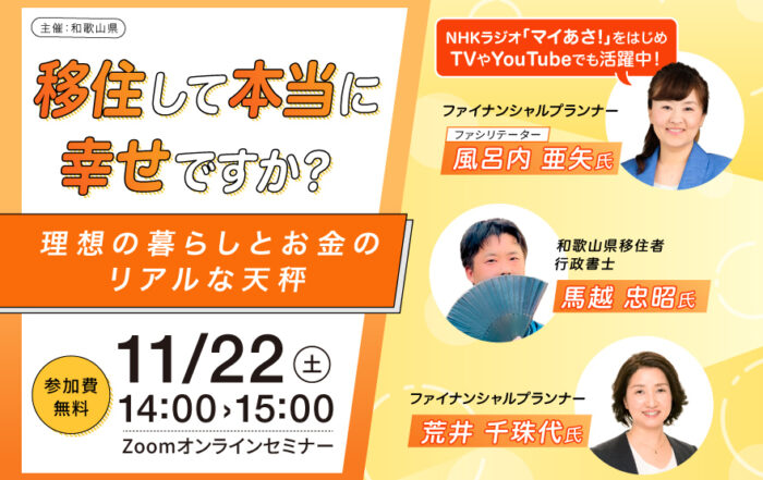 わかやまキャリアチェンジ応援プロジェクト2025-10-31T17:21:35+09:00【オンライン開催】移住して、本当に幸せですか?~理想の暮らしとお金のリアルな天秤~わかやまキャリアチェンジ応援プロジェクト2025-10-31T17:21:35+09:002025.10.31|