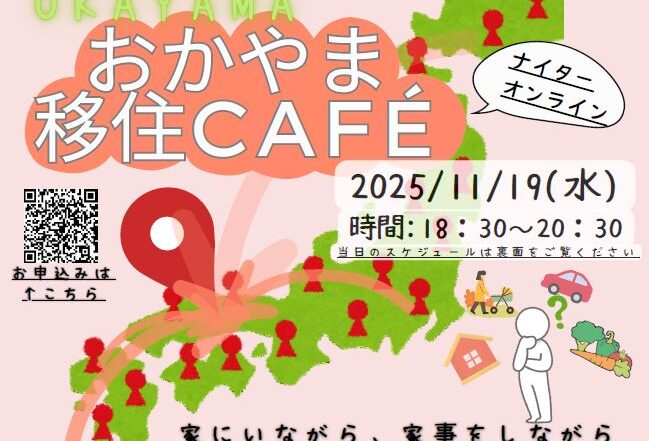 おかやまぐらし相談センター2025-10-30T11:52:41+09:00岡山移住CAFÉを開催します。検索もいいけど、知っている人に聞いてみませんか?分からない事がわからなくても大丈夫!これだけは知っておこうも教えてもらえます。おかやまぐらし相談センター2025-10-30T11:52:41+09:002025.10.30|