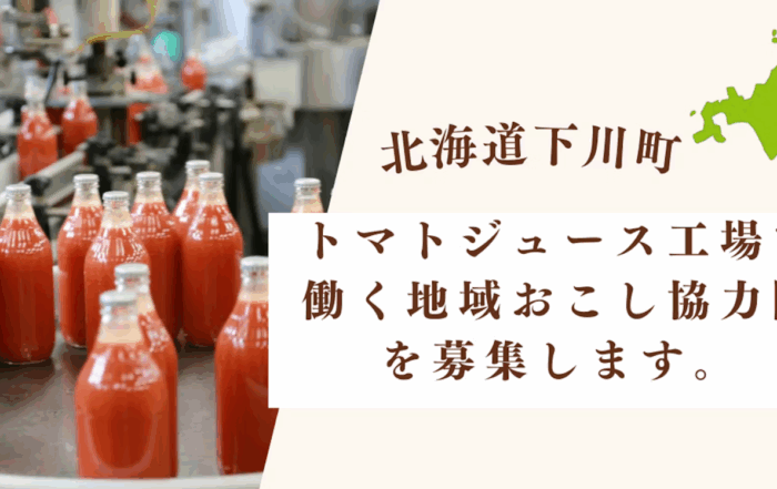 一般財団法人しもかわ地域振興機構2025-12-16T17:13:33+09:00🍅 北海道・下川町で「トマトジュースづくり」に挑む地域おこし協力隊募集一般財団法人しもかわ地域振興機構2025-12-16T17:13:33+09:002025.12.16|