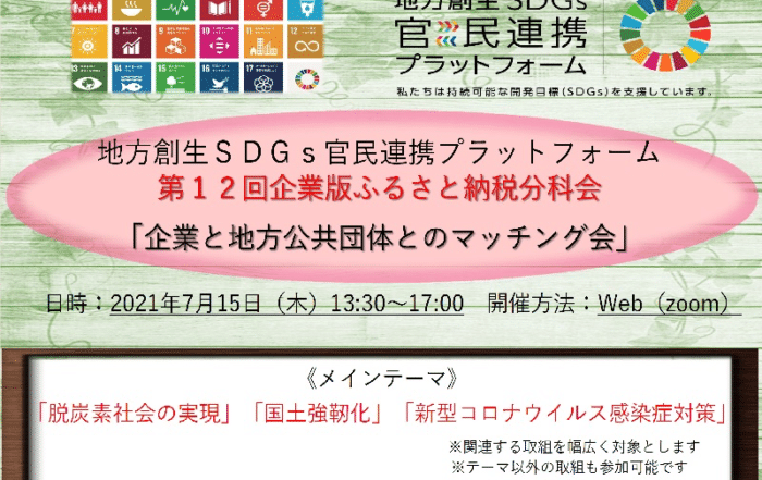 Nativ.media編集部2021-06-21T18:58:12+09:00地方創生 SDGs 官民連携プラットフォーム・第 12 回企業版ふるさと納税分科会 「企業と地方公共団体とのマッチング会」開催についてNativ.media編集部2021-06-21T18:58:12+09:002021.06.11|