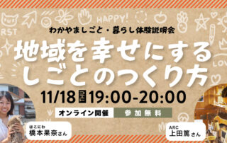 【11/18(火)オンライン開催】地域を幸せにするしごとのつくり方|しごと・暮らし体験説明会