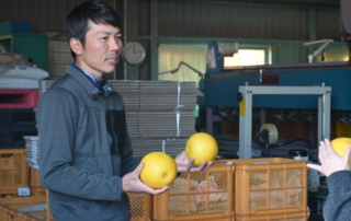 サワーポメロの香りに包まれて 取材に伺った2月下旬、木之下さんの果樹園の倉庫は、いちき串木野市の特産品・サワーポメロの爽やかな香りに満ちていました。サイズごとに選別された果実がコンテナに収められ、整然と積み上げられた光景は圧巻。その香りは倉庫の外までふわりと広がっていました。 [...]