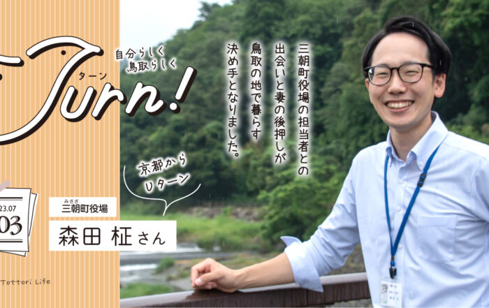 鳥取県2023-07-26T11:41:47+09:00トットリワカモノIJUターン情報誌ターン(Turn)】「Turn#103」京都府からUターン/三朝町役場 森田さんBy 鳥取県|2023-07-26T11:41:47+09:002023.07.20|