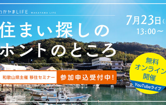 わかやまキャリアチェンジ応援プロジェクト2023-07-06T16:52:22+09:00【オンライン開催】移住先の住まい探しのポイントは??~和歌山県に行って聞いてきました~|和歌山県主催・移住セミナーBy わかやまキャリアチェンジ応援プロジェクト|2023-07-06T16:52:22+09:002023.07.05|