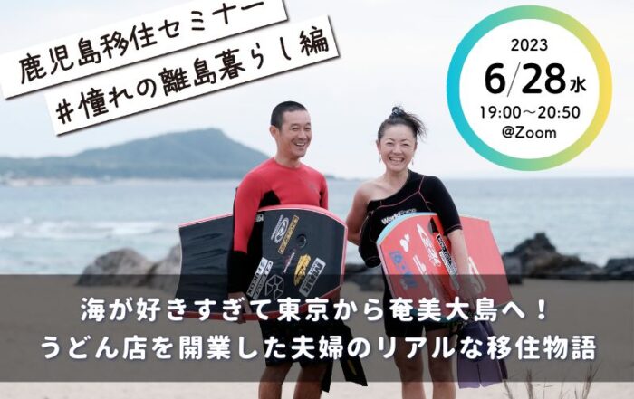 Nativ.media編集部2023-07-10T16:55:19+09:00【鹿児島移住セミナー2023】vol.1 #憧れの離島暮らし編-海が好きすぎて東京から奄美大島へ!うどん店を開業した夫婦のリアルな移住物語By Nativ.media編集部|2023-07-10T16:55:19+09:002023.06.08|