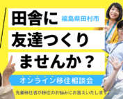 福島県田村市2023-01-17T18:40:04+09:00年始め、移住を考え始めたならまずは先輩移住者に聞いてみよう♪福島県田村市オンライン移住相談会1/18(水)開催!By 福島県田村市|2023-01-17T18:40:04+09:002023.01.11|