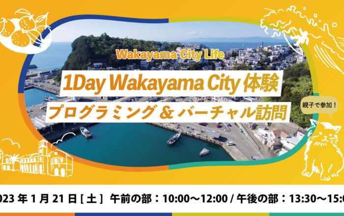 わかやまキャリアチェンジ応援プロジェクト2023-01-04T09:32:45+09:00【和歌山市主催/オンライン開催】1Day Wakayama City 体験!親子でプログラミング/バーチャル訪問By わかやまキャリアチェンジ応援プロジェクト|2023-01-04T09:32:45+09:002022.12.29|