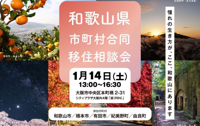 わかやまキャリアチェンジ応援プロジェクト2022-12-25T23:29:47+09:00【1/14(土) 現地開催 in大阪】〜アクセス良好×豊かな自然環境!「和歌山県」の5市町が合同で移住相談会を開催します🎶 〜By わかやまキャリアチェンジ応援プロジェクト|2022-12-25T23:29:47+09:002022.12.22|